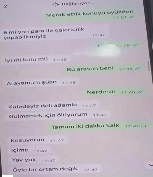 WhatsApp mesajlarında şüphelilerden biri "2 milyon Euro dağıttı etrafa, bize 200 bin Dolar geldi, bu parayla galeri kuracağız" demiş.