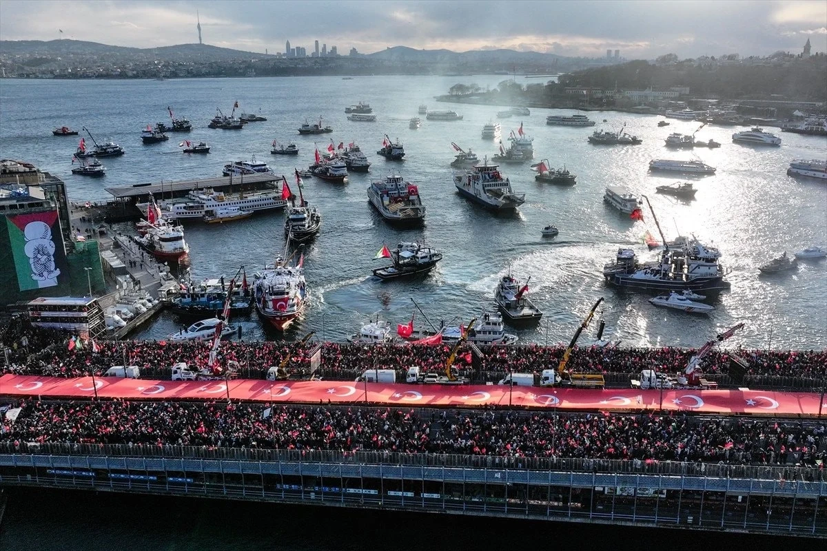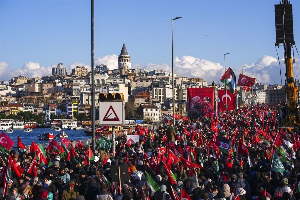 İsrail'in Gazze'deki saldırılarına tepki göstermek için İstanbul'da düzenlenen Büyük Gazze Yürüyüşü'ne yüz binlerce kişi katıldı. Katılımcılar sabah namazından sonra Ayasofya, Sultanahmet, Fatih ve Süleymaniye camilerinden Galata Köprüsü'ne doğru yürüdü.