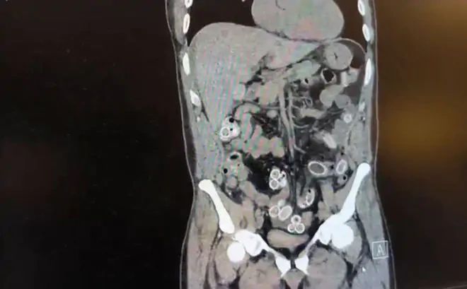 Muayene sırasında çekilen tomografide Cüneyt G.'nin mide ve bağırsaklarında yabancı cisimler görüldü.