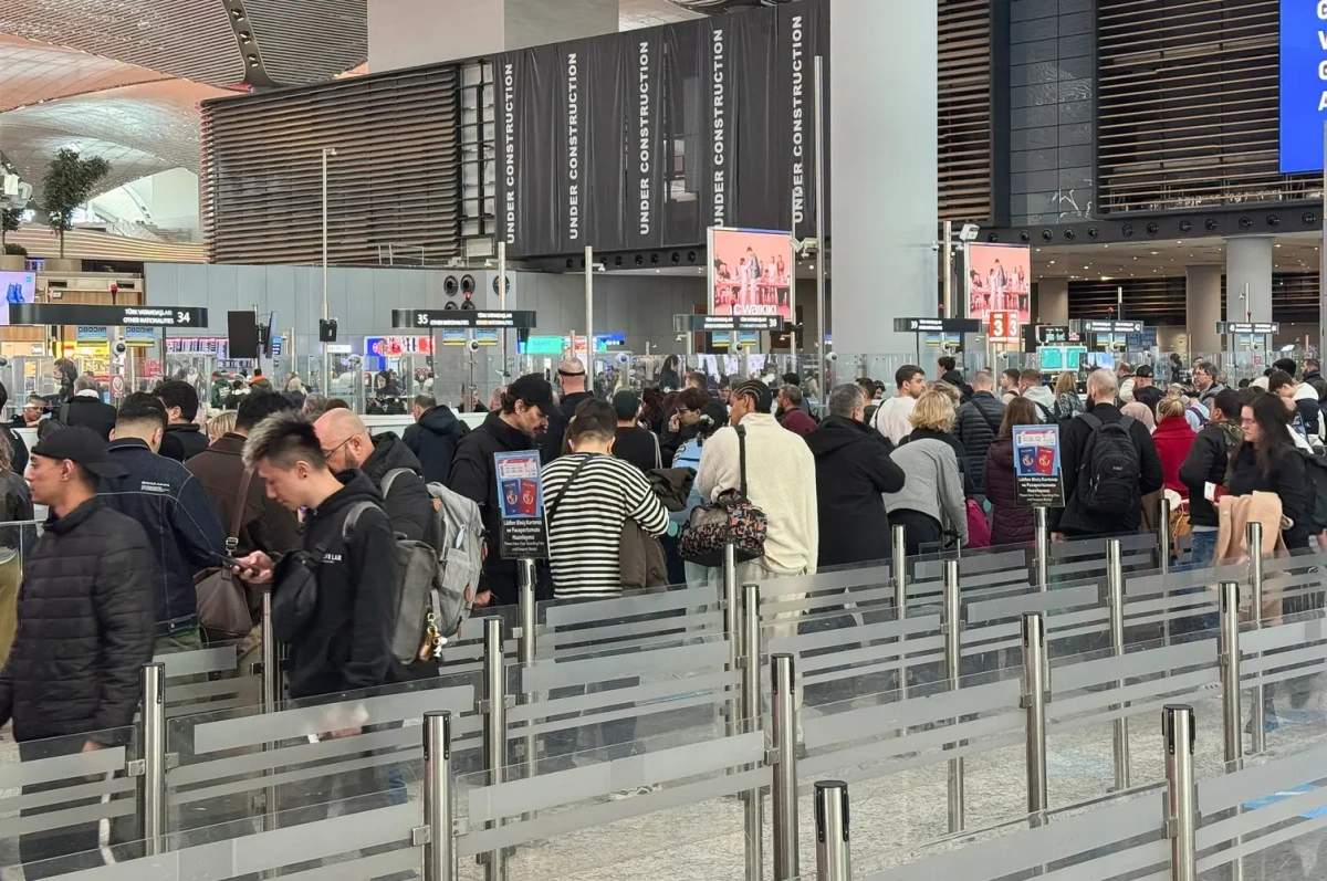 Güvenlik kontrol noktaları ve kontuvar hatlarında kısa süreli kalabalık oluştu.