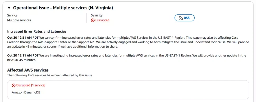 AWS, hizmet durum sayfasında "birden fazla AWS hizmetinde artan hata oranları ve gecikmeler" yaşandığını doğruladı.