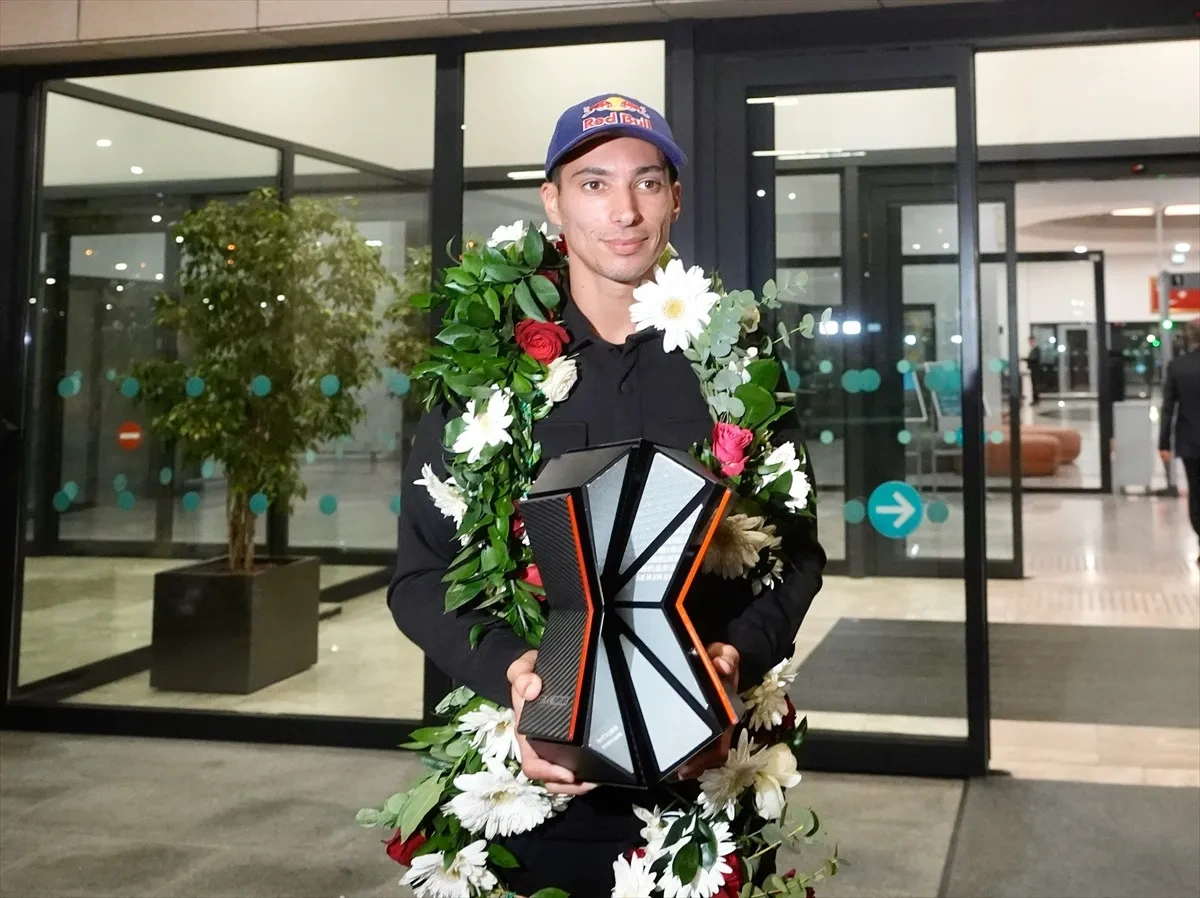2025 Dünya Superbike Şampiyonası'nda üçüncü kez şampiyon olan Toprak Razgatlıoğlu, Türkiye'ye döndü. Malaga'dan kalkan uçakla İstanbul Havalimanı VIP Terminali'ne gelen milli sporcuya, Kenan Sofuoğlu, Can Öncü ve Deniz Öncü eşlik etti.