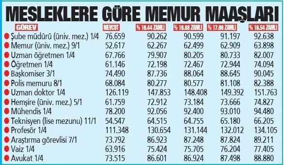 6.5 milyon memurun ve memur emeklisinin Ocak zammı yüzde 11 artış, bin lira taban aylık artışı ve enflasyon farkından oluşuyor.