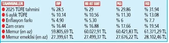 En düşük maaş memurlarda 60 bin 422, emeklilerde 27 bin 676 liraya ulaşacak.