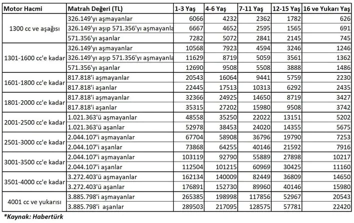 2018 öncesi araçlarda ise sadece motor hacmi ve yaş dikkate alınıyor.