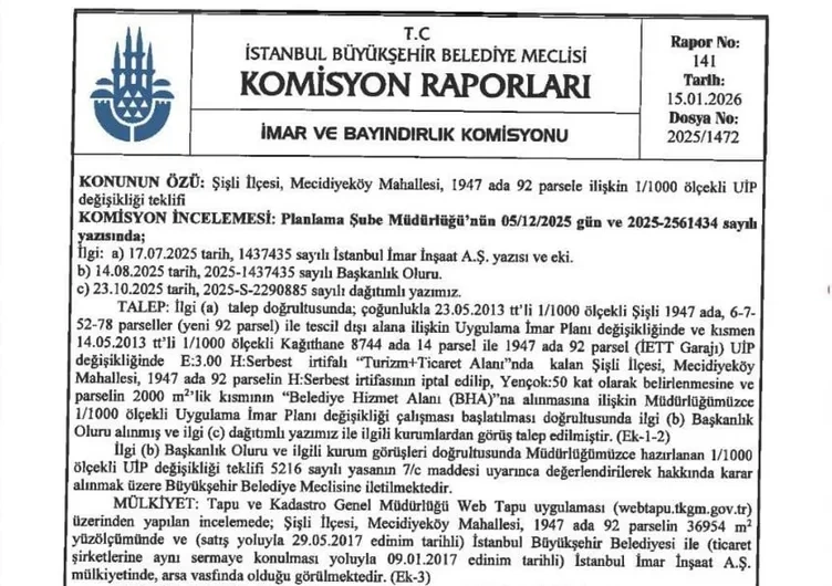İstanbul Büyükşehir Belediyesi Meclisi, CHP'li üyelerin oylarıyla Levent'teki 36 bin metrekarelik İETT Garajı arazisini imara açtı. AK Parti döneminde park alanı olarak planlanan ve CHP'lilerin de yeşil alan kalması için eylem yaptığı arazi, şimdi 50 kata kadar yapılaşmaya izin veren 3 emsal ile imar planına alındı. Bu kararla yaklaşık 2 milyar dolarlık (87 milyar TL) rant oluştuğu belirtiliyor.