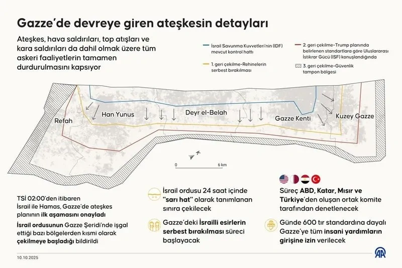 İsrail ile Hamas arasında 9 Ekim'de Mısır'da varılan ateşkes anlaşması 10 Ekim'de yürürlüğe girdi.