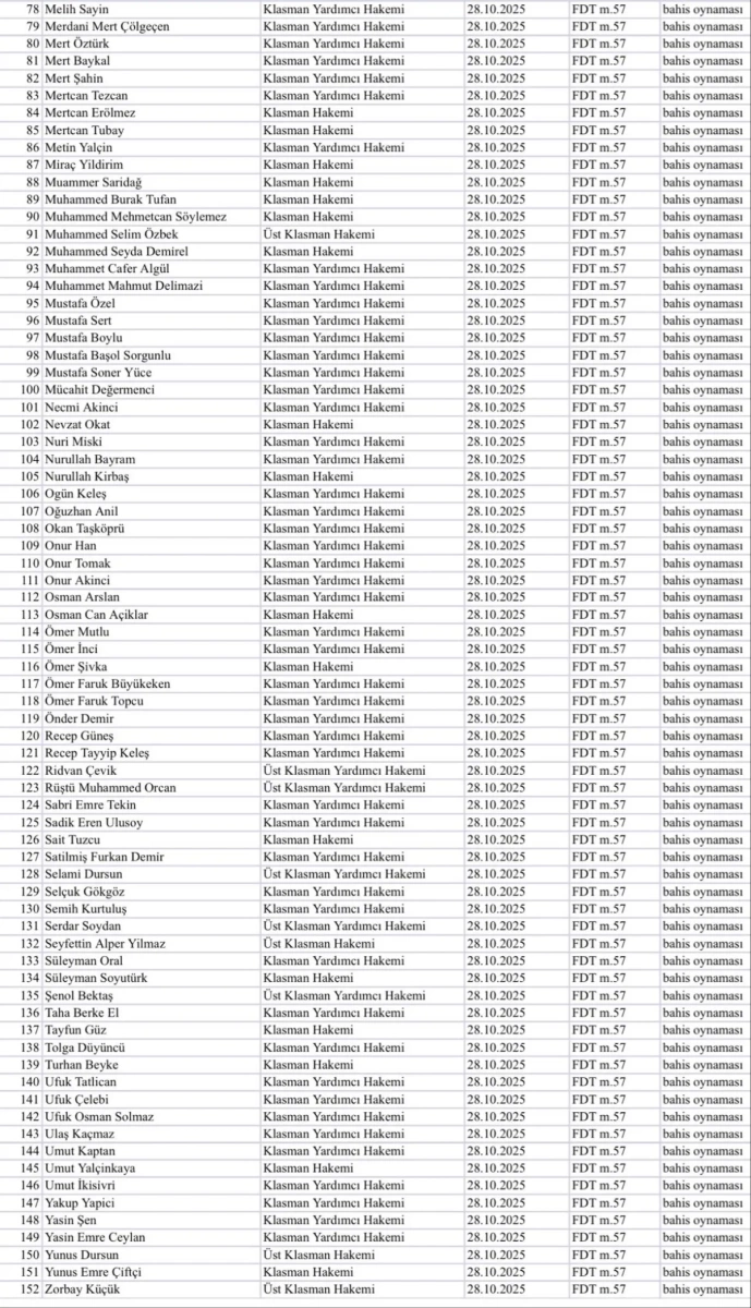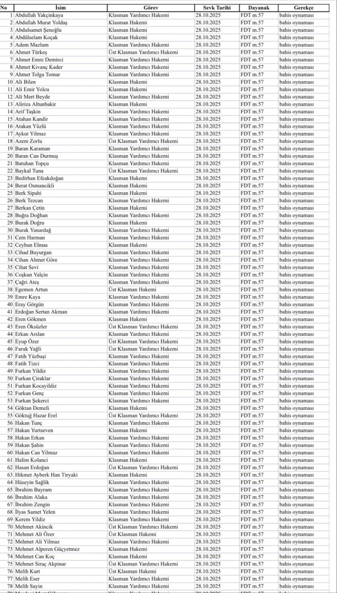 Hakemler 28 Ekim 2025 tarihinden itibaren tedbirli olarak görevden uzaklaştırıldı.