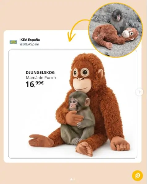 Japonya'daki Ichikawa Hayvanat Bahçesi'nde annesi tarafından terk edilen altı aylık makak yavrusu Punch, bakıcılarına sarılırken ve IKEA'dan alınan turuncu bir peluş orangutanı yanında taşırken çekilen görüntülerle sosyal medyada viral oldu. Punch'ın hikayesi IKEA'nın pazarlama başarısına dönüşürken oyuncak hem Japonya'da hem Türkiye'de yok satmaya başladı. Andrew Tate kardeşleri ise yavru maymunu satın almak için 250 bin dolar teklif etti; ancak hayvanat bahçesi teklifi kabul etmedi.