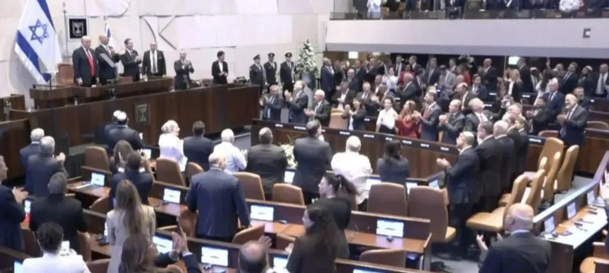 Trump, konuşma yapmak üzere İsrail Meclisi Knesset'e geçti ve 2,5 dakika boyunca alkışlarla karşılandı.