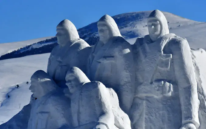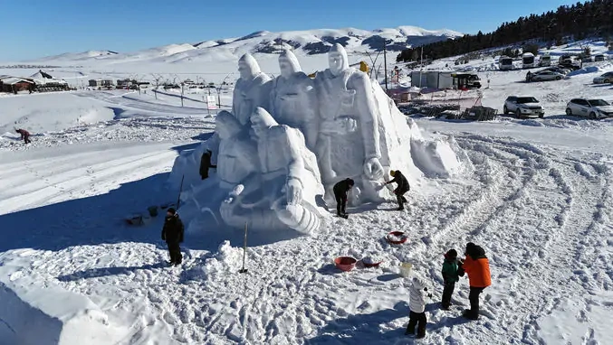 Kars'ın Sarıkamış ilçesinde, 111 yıl önce Allahuekber Dağları'nda şehit olan askerlerin anısına kardan heykeller yapıldı. Kafkas ve Atatürk üniversitelerinden 6 kişilik ekip, 10 günlük çalışma sonunda Sarıkamış Kayak Merkezi ve Kızılçubuk mevkisinde şehit askerleri temsil eden kardan heykelleri tamamladı. Heykeller, 3-4 Ocak'ta düzenlenecek Sarıkamış Harekatı'nın 111. yılı anma etkinliklerinde sergilenecek.