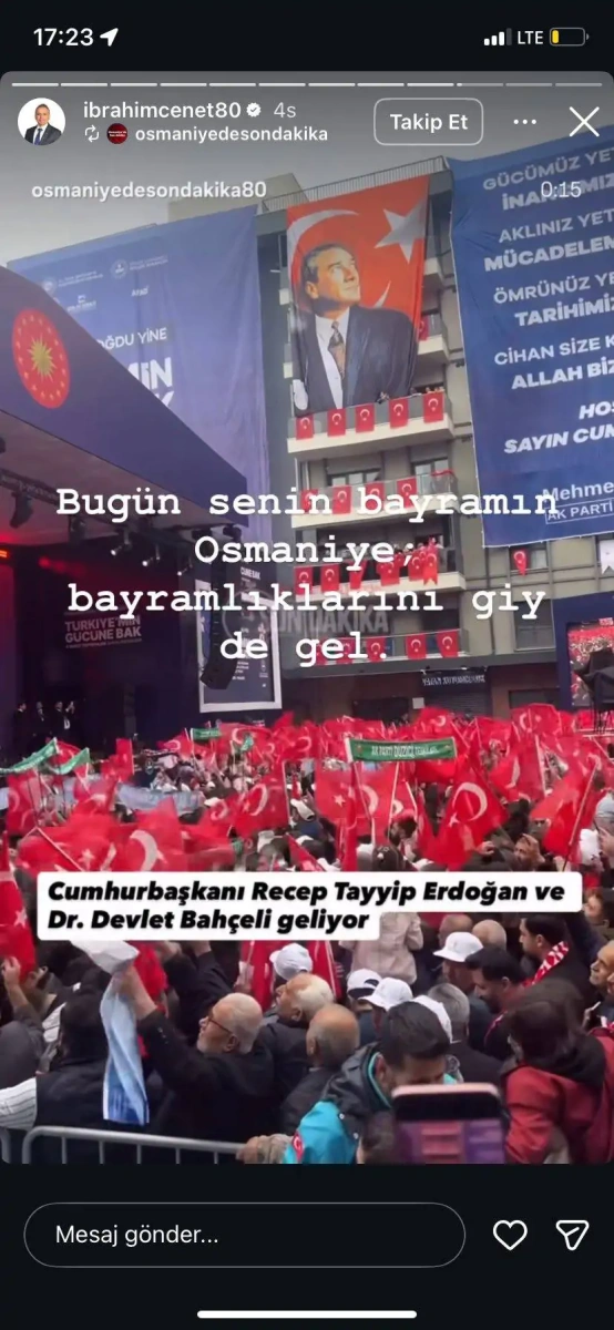 Osmaniye Belediye Başkanı İbrahim Çenet, 6 Şubat depremlerinin 3. yıldönümünde Cumhurbaşkanı Erdoğan ve MHP Genel Başkanı Bahçeli'nin Osmaniye ziyareti öncesinde sosyal medyadan tartışma yaratan bir paylaşım yaptı.