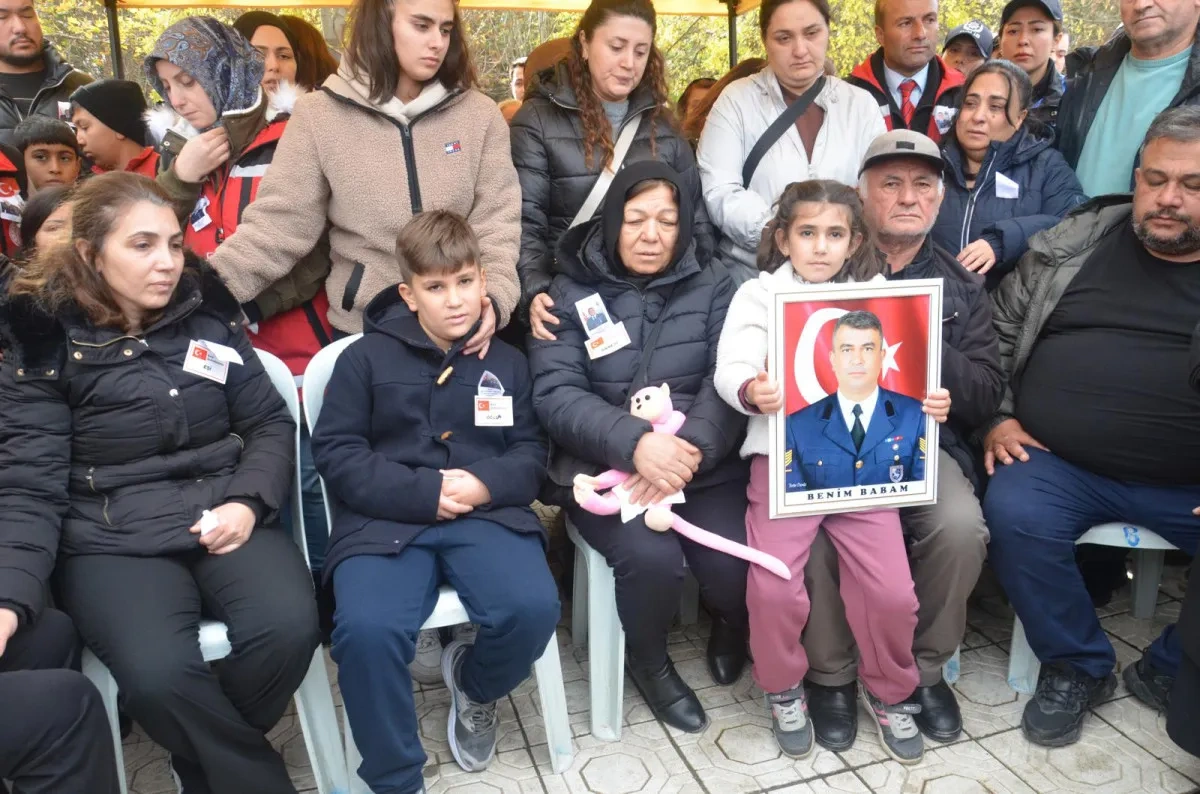 Cenaze töreninde şehidin annesi Dilşat ve babası Ümit Kaplan gözyaşı dökerken, eşi Hülya Kaplan da oğlu Poyraz ve kızı Cemre'ye sarılarak ağladı.