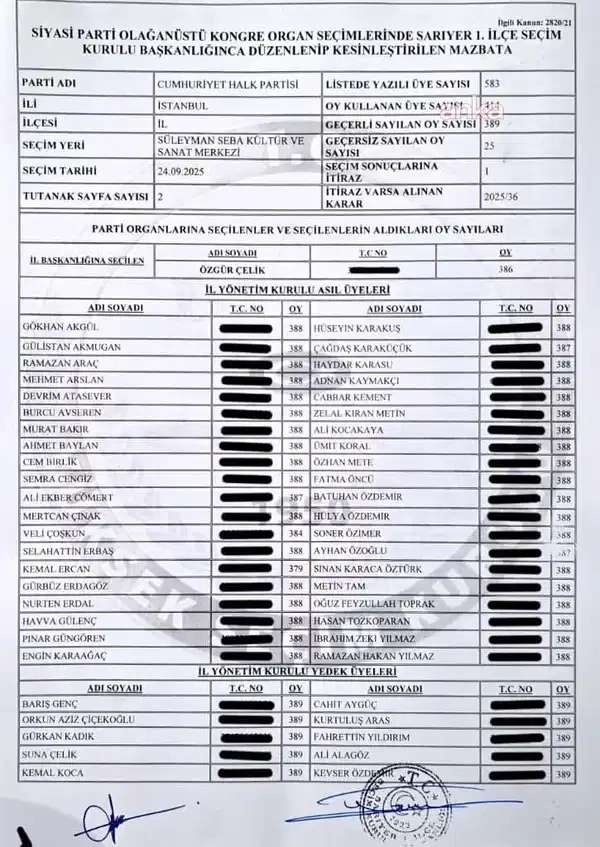 CHP Grup Başkanvekili Murat Emir sosyal medyadan, "YSK'nın kesin kararına rağmen 1,5 saat direndiler ama sonuç değişmedi. CHP'nin İstanbul İl Başkanı Özgür Çelik'tir. Sahte unvanlarla ortaya çıkanlara itibar etmeyin" paylaşımında bulundu.