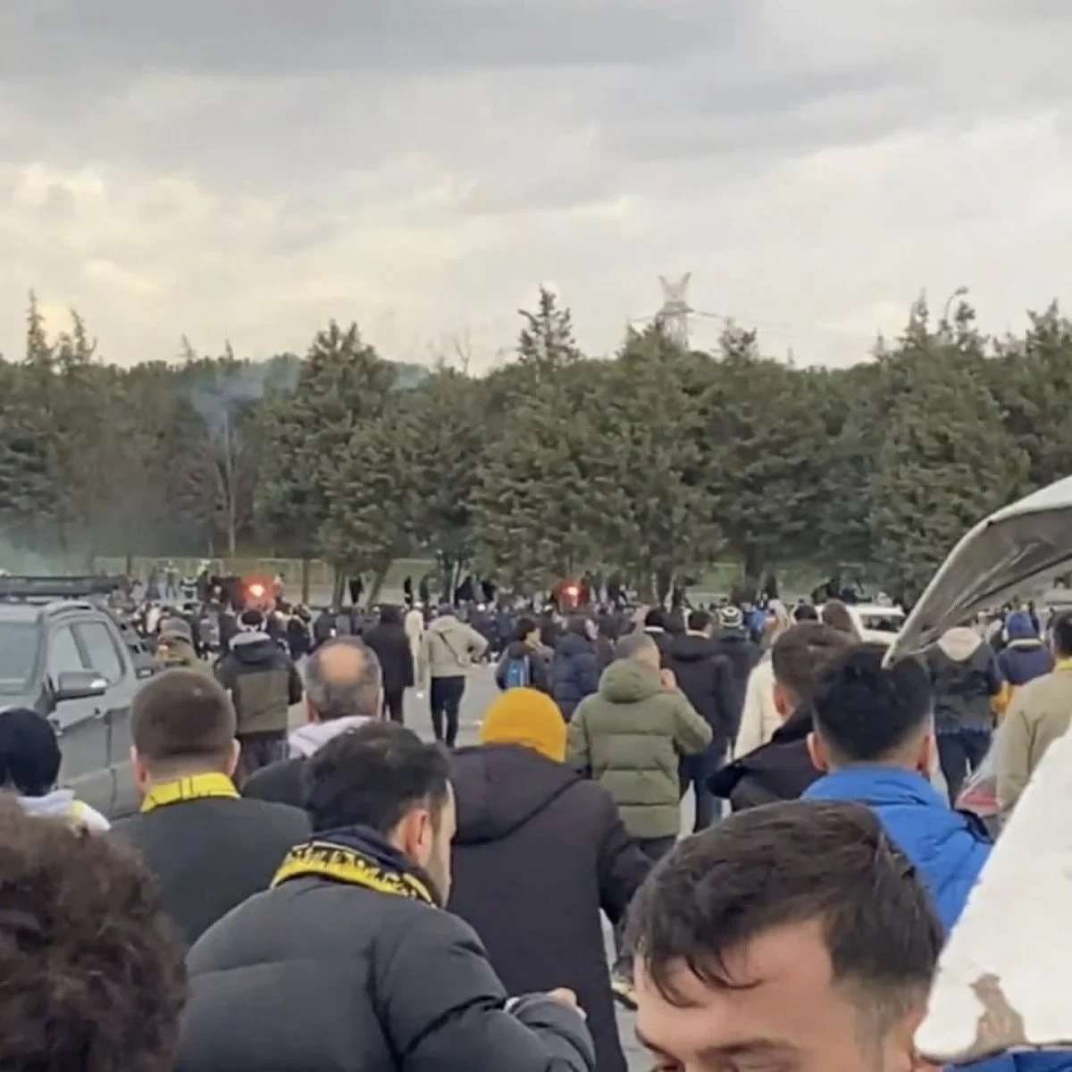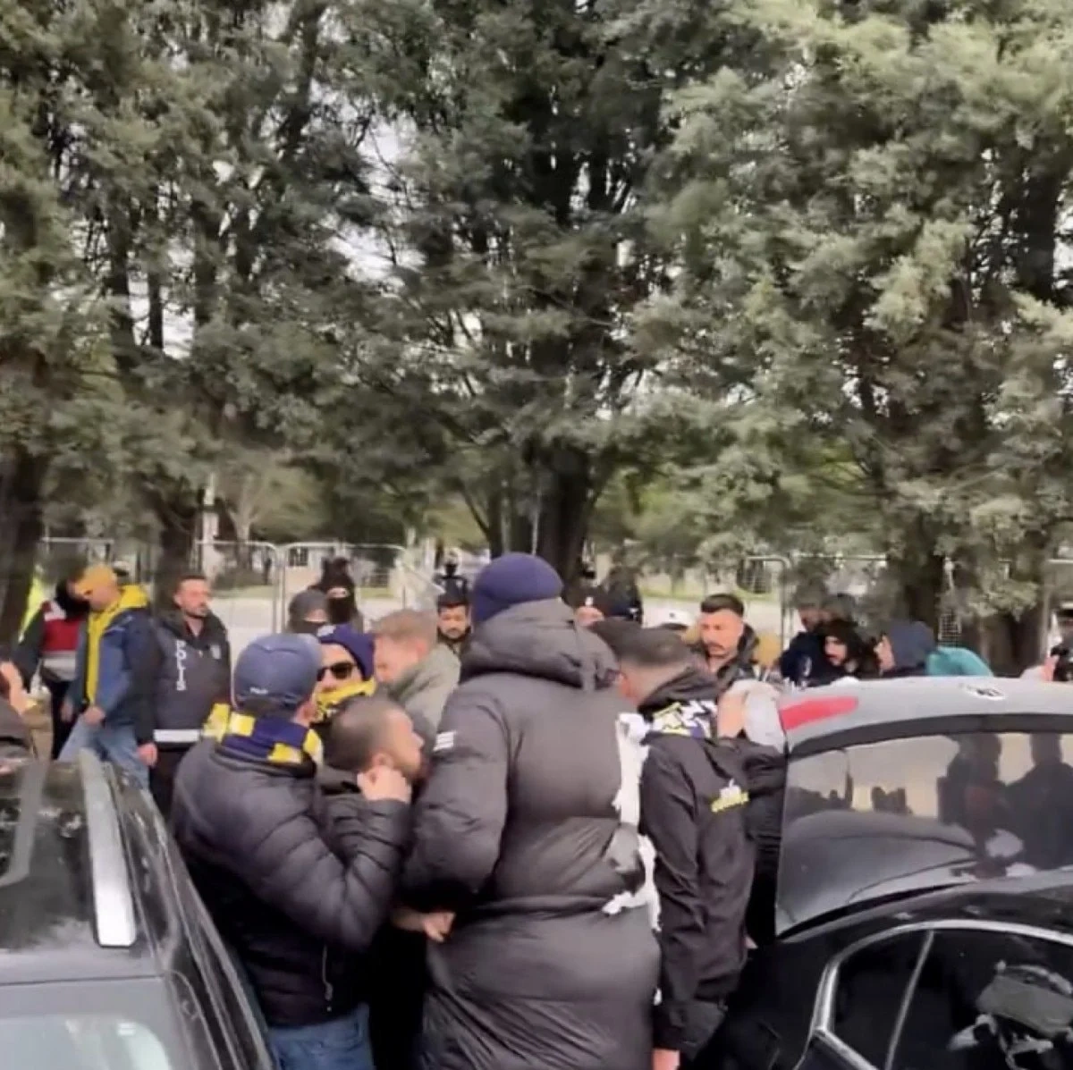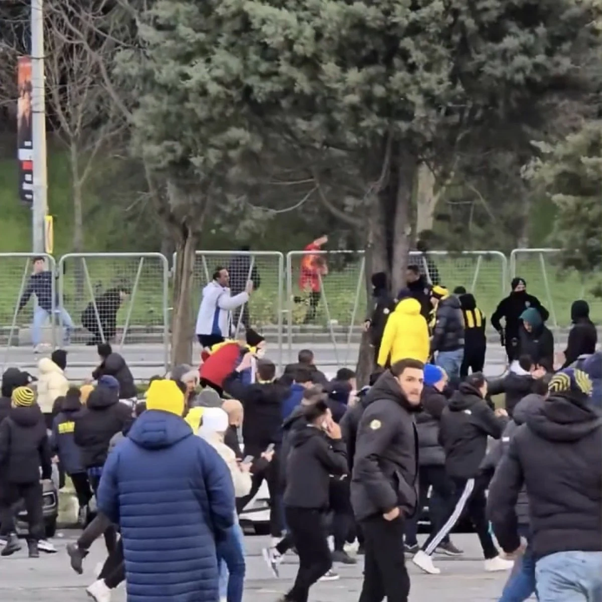Sosyal medyaya yansıyan görüntülerde Fenerbahçeli ve Galatasaraylı taraftarların kavga ettiği görüldü.