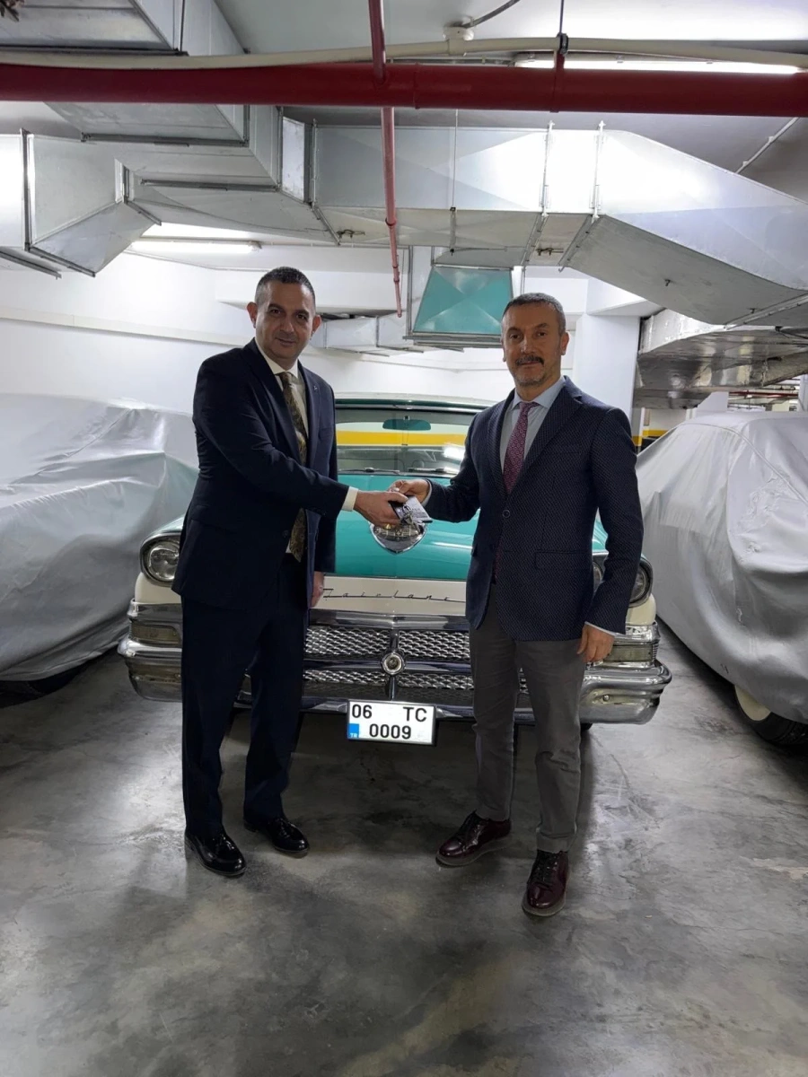 06 TC 0009 plakalı 1958 model otomobil, MHP Lideri Bahçeli'nin özel kalem müdürü Murat Çekiler tarafından teslim edildi.